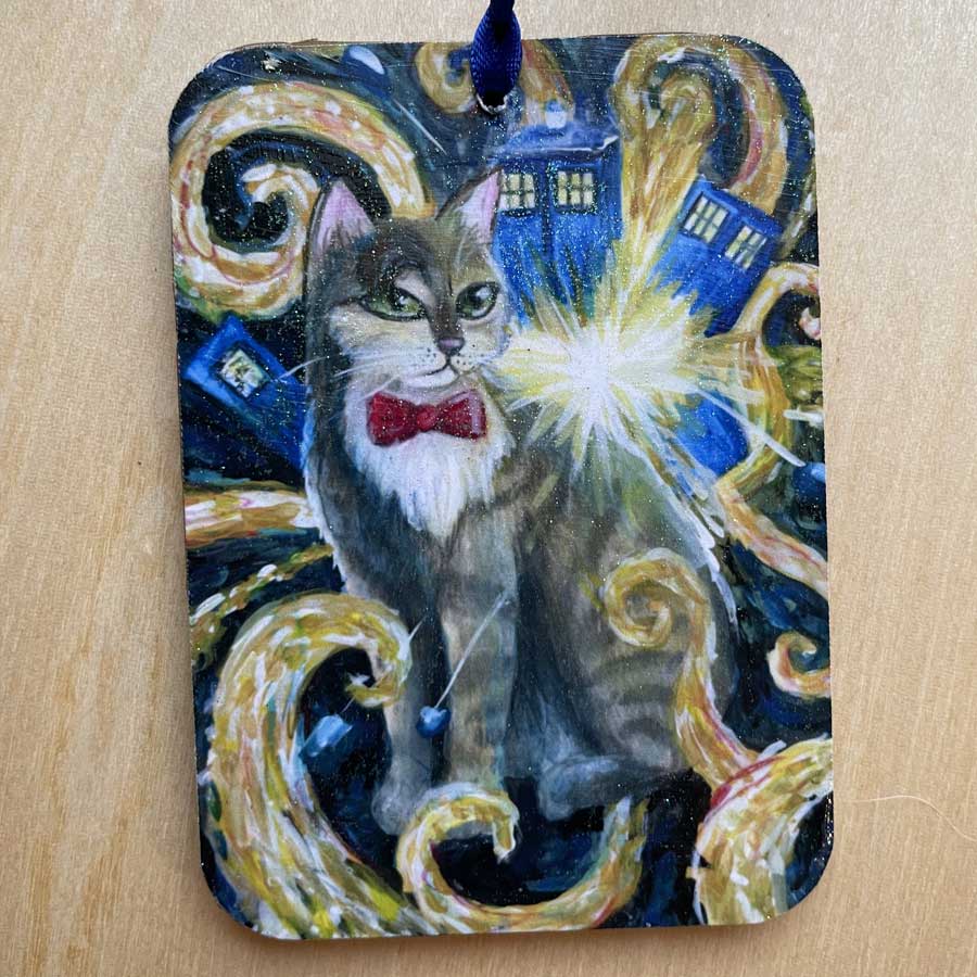 Part of my 2026 Sci-Fi Cat calendar, this ornament features the exploding Tardis from Dr. Who.