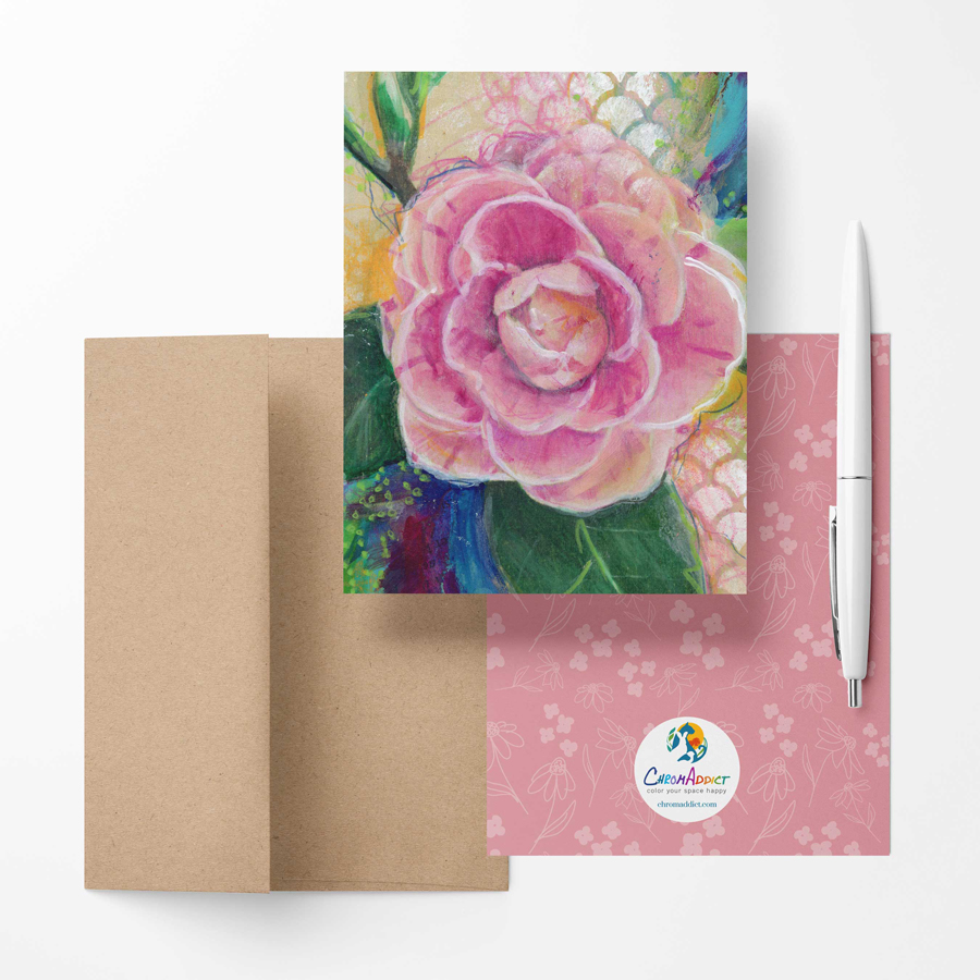 Set of 6 blank note cards and envelopes featuring beuatiful garden flowers. Card has a coordinating pattern on the back. Size of card is 4.25″ x 5.5″ (A2). These come packaged in a clear box making them the perfect gift.