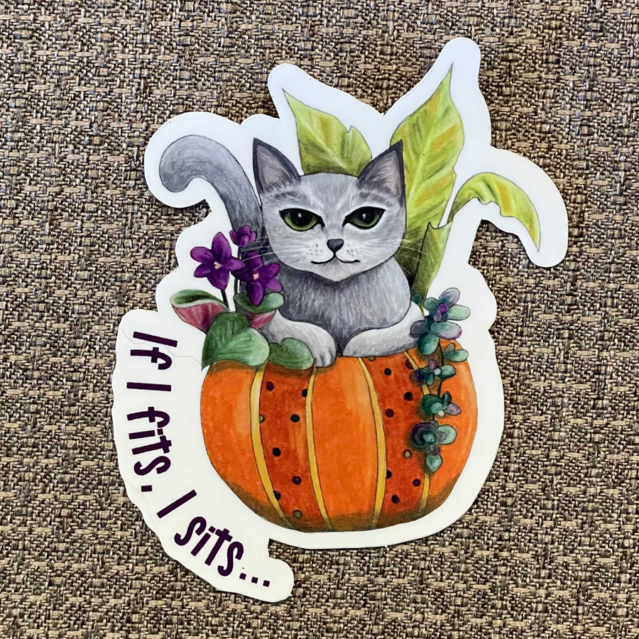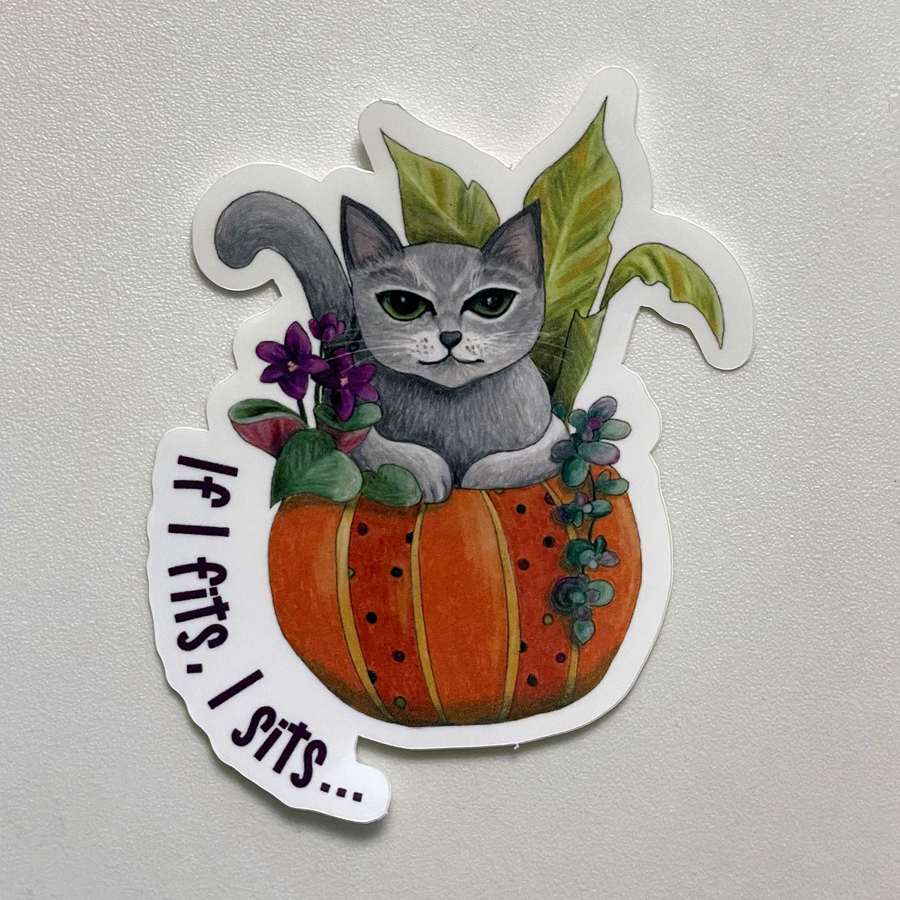 Sticker – If I Fits, I Sits Gray Cat in Pumpkin