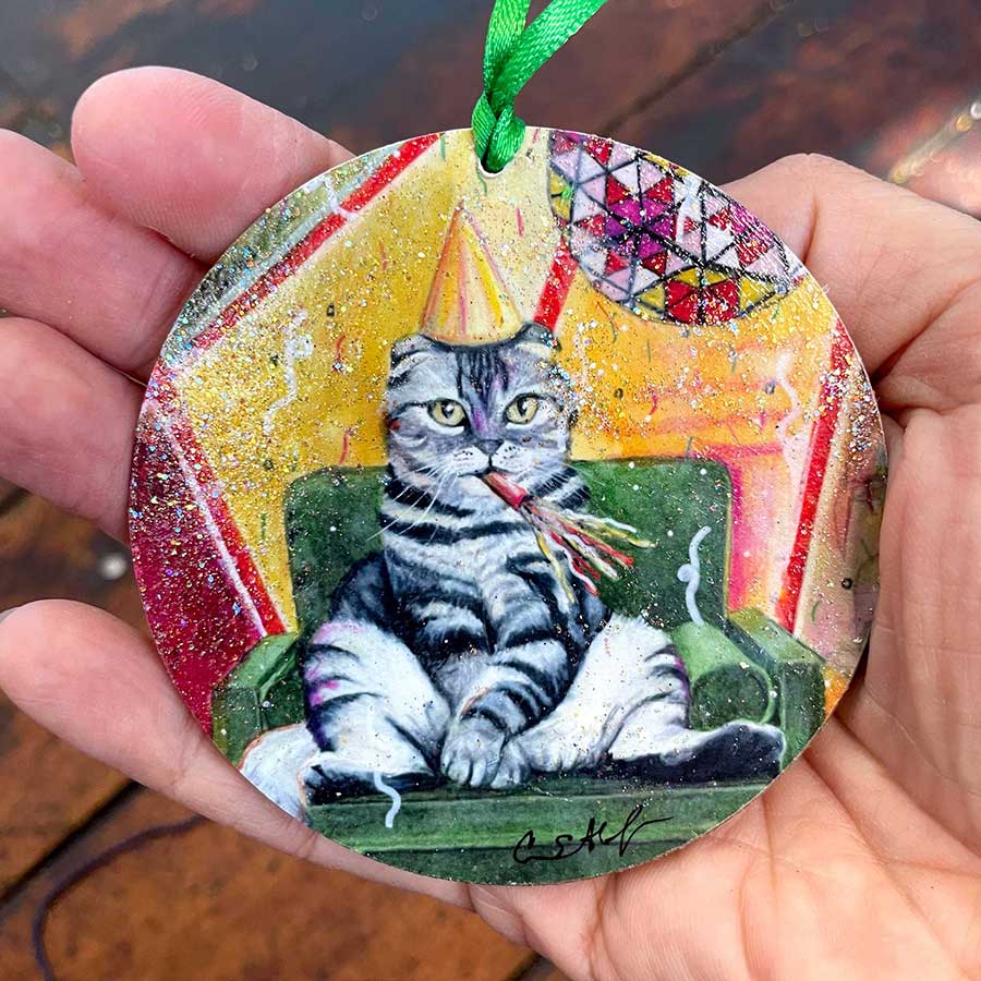 “Party Cat” is part of the 2023 Chairished Cats Calendar and was made with a New Year’s Eve party in mind for January.
