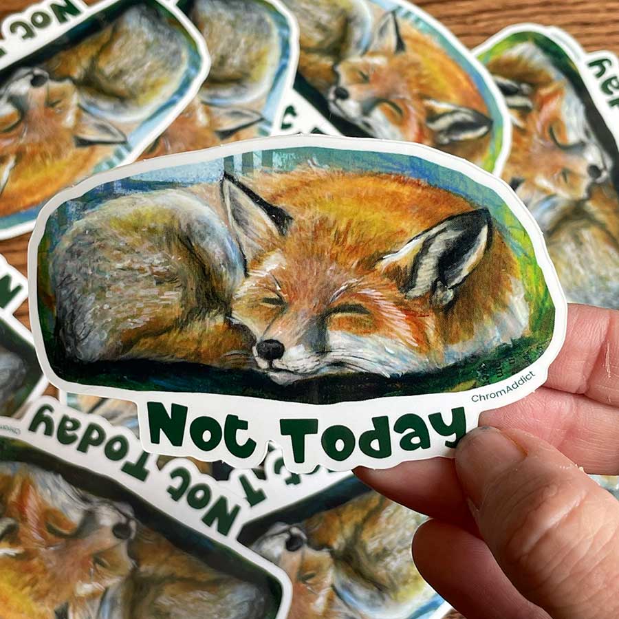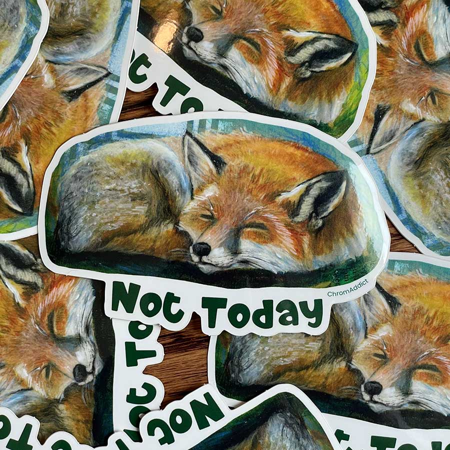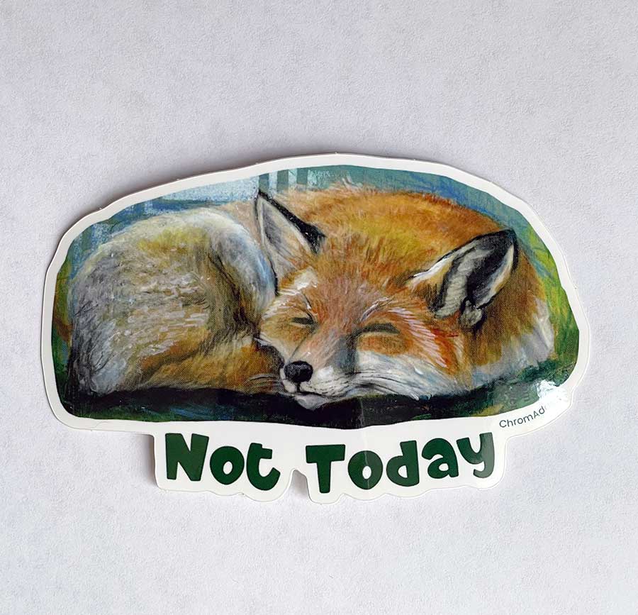 This cute little sleeping fox says “Not Today!” Sleep is good. Add this sticker to your laptop, car, of favorite water bottle. This die cut sticker is approximately 2.5″ tall x 3.75″ wide at it’s widest point.